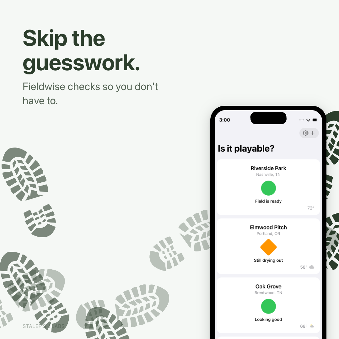 Fieldwise joins Ridewise and Yardwise in the Groundwise trilogy — the same trusted weather engine, each tuned to answer a different outdoor question.